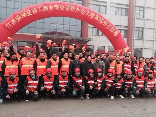 | 2013年12月8日清晨7時(shí)許,晨霧尚未散去,路翔企業(yè)位于如皋市磨頭鎮(zhèn)新聯(lián)村19組的辦公區(qū),已是音樂悠揚(yáng)、花團(tuán)錦簇、歡聲笑語、車來人往,一派喜慶的氣象,巨型的紅色氣拱門上“江蘇路翔交通工程有限公司新辦公樓落成喬遷志禧”的條幅,向所有人昭示著今天活動的主題。