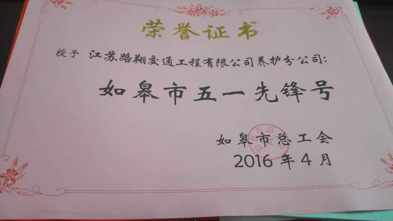 4月28日下午2時許,如皋市慶祝五一國際勞動節表彰大會在市總工會禮堂隆重舉行,我單位養護分公司榮獲“如皋市五一先鋒號”稱號。