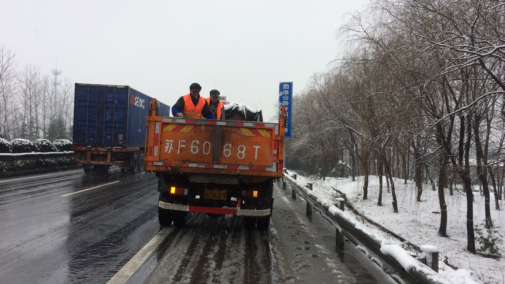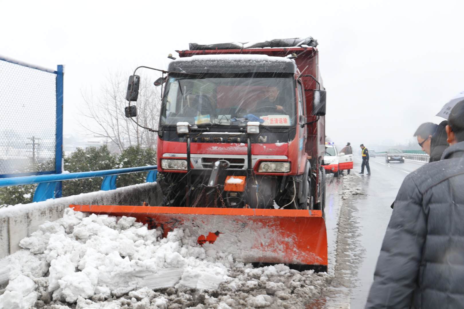 當人們還沉浸在香甜的夢中,養護分公司的伙伴們已經在風雪中穿梭巡查。一個個“橘黃色”的身影在緊張的忙碌著,及時通報城市路面、橋面和縣鄉道路面積雪情況,及時掃雪除雪,保障市民的安全通行。4日下午,大雪漸停,為防止夜間結冰,緊急對所有大橋進行融雪鹽撒布,累計出動29名養護工人,7輛農用車,3輛輕卡,27噸融雪鹽。