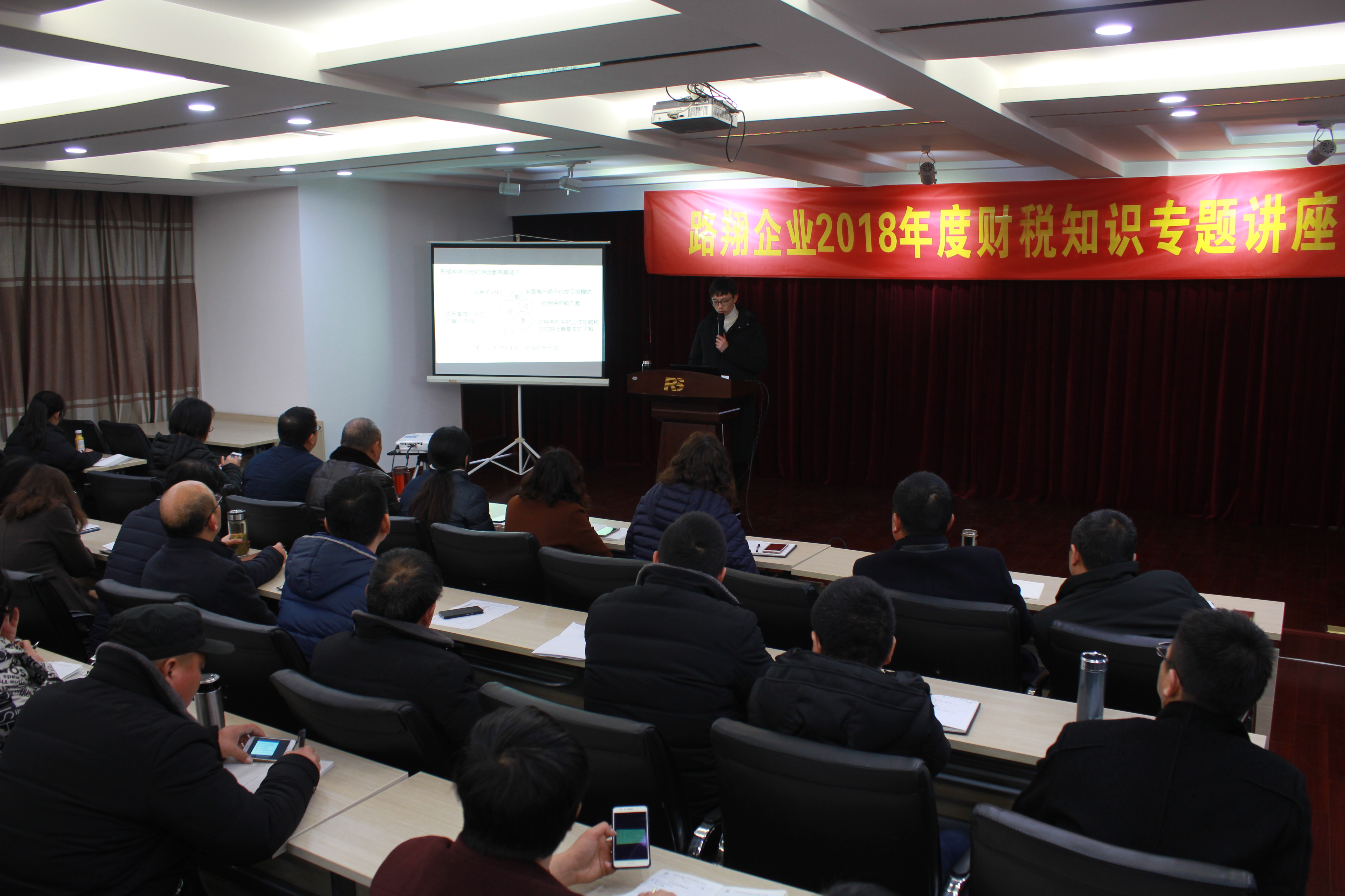 2月26日下午2時,路翔企業2018年度財稅知識專題講座在公司二樓大會議室召開,公司經營層、中層領導、項目經理、部門人員和財務統計人員共80人參加培訓。