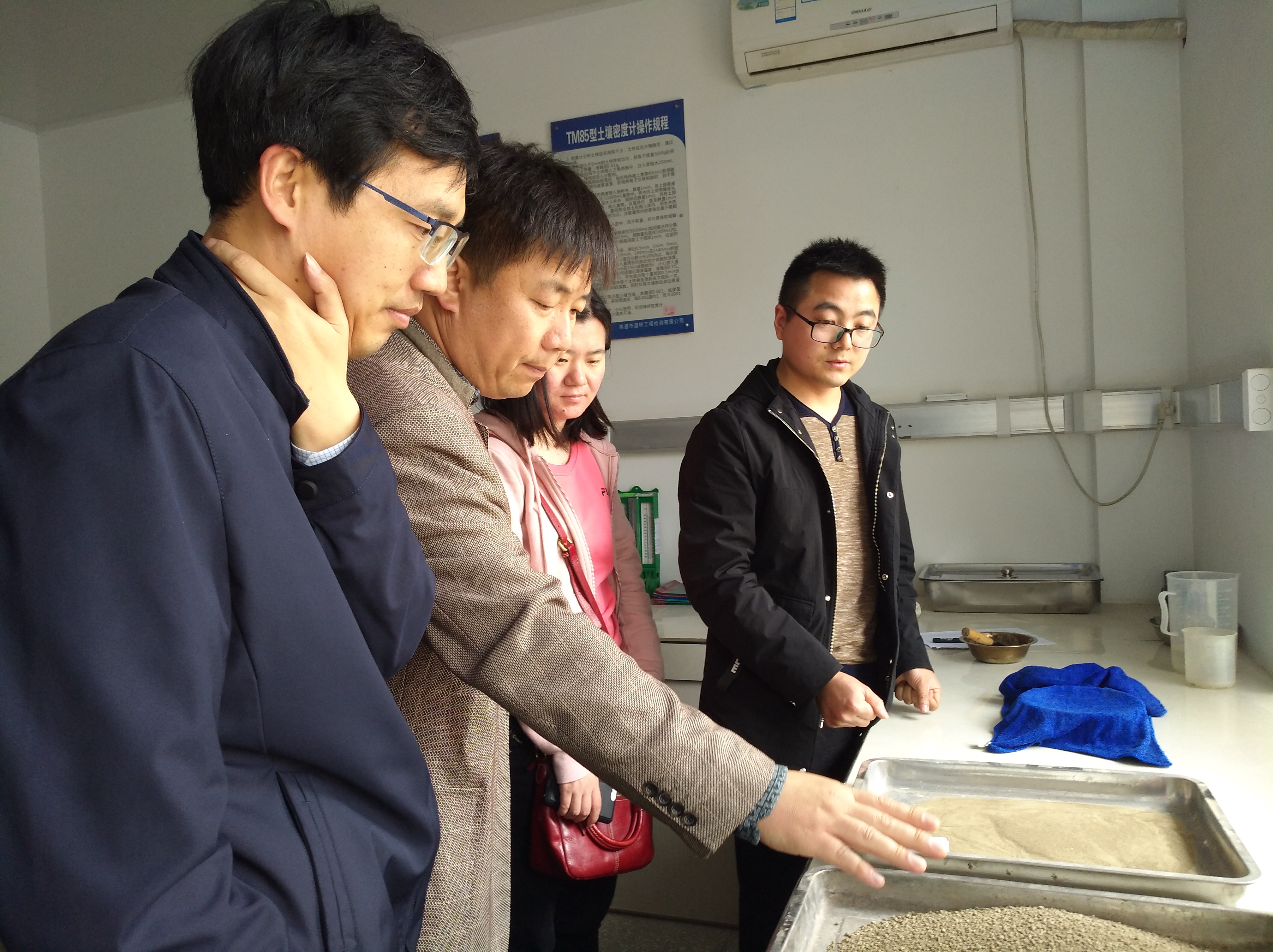 2019年4月24日上午,如皋市交通質(zhì)監(jiān)所一行四人來到我們南通道橋工程檢測有限公司,對試驗檢測工作進(jìn)行檢查和指導(dǎo)。首先,檢查組一行參觀并檢查了公司試驗及辦公環(huán)境、儀器設(shè)備配置、管理、技術(shù)人員配備、資質(zhì)等情況。檢測公司試驗室主任宋玉波一路隨行,詳細(xì)講解了各試驗檢測項目所用儀器的使用方法及注意事項,并安排相關(guān)專業(yè)試驗檢測人員進(jìn)行了同步操作。
