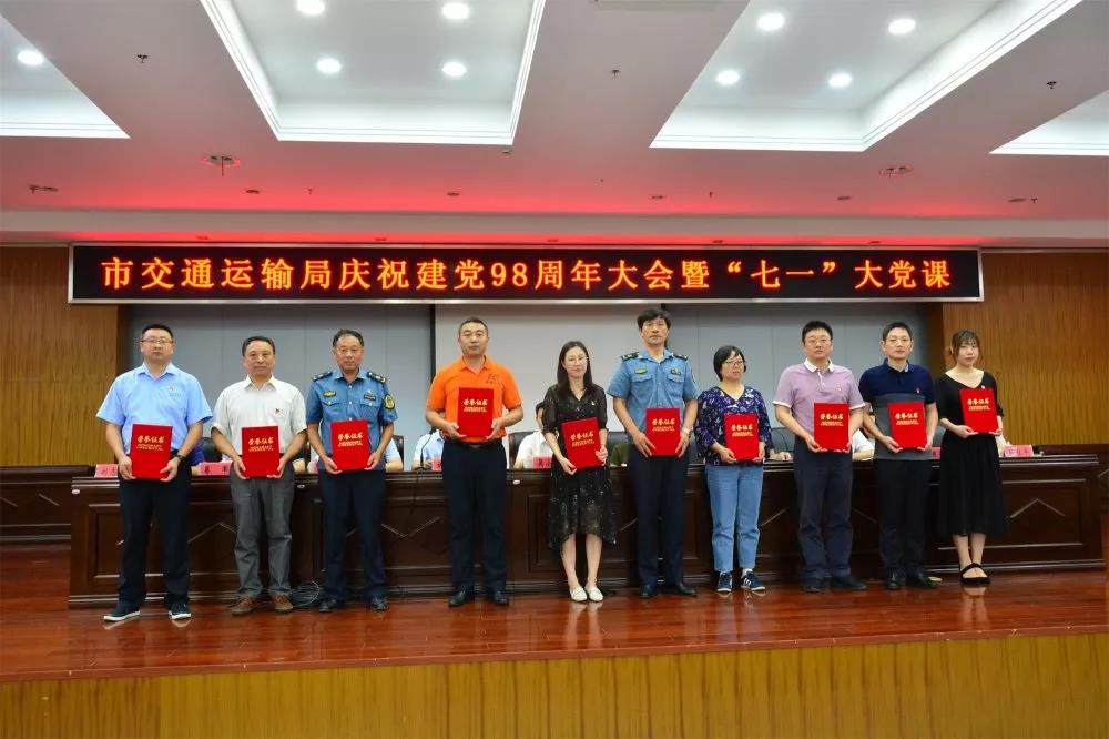 7月5日上午9:00,市交通運輸局行政服務中心三樓報告廳隆重舉行了慶祝建黨98周年大會暨“七一”大黨課活動。局黨委班子全體成員、各基層黨組織書記、交通運輸系統黨員干部代表,各工程指揮部、中建集團如皋項目部代表以及重點港口企業、星星公交、出租公司等單位的主要負責人參加活動。公司副總經理楊文彬帶領黨員代表及受表彰人員共8人與會。會上,公司董事長兼黨支部書記周紅梅、養護分公司經理季偉、路面公司裝載機駕駛員謝海軍分別被表彰為“優秀黨務工作者”、“優秀共產黨員”、“最美交通人”。 |