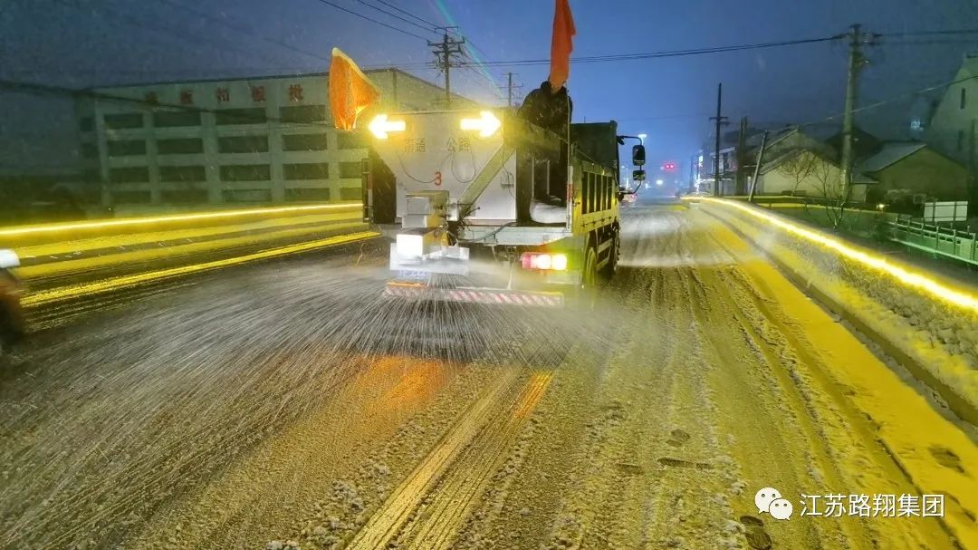 12月18日我市迎來大范圍降雪,同時(shí)如皋氣象臺(tái)發(fā)布暴雪藍(lán)色預(yù)警信號(hào)、道路結(jié)冰黃色預(yù)警信號(hào)。路翔公司及時(shí)啟動(dòng)雨雪冰凍等惡劣天氣應(yīng)急預(yù)案,迅速調(diào)配機(jī)械設(shè)備、人員開展融雪、清雪、除冰工作。重點(diǎn)突出國(guó)省干線、橋梁除雪保暢工作,實(shí)施融雪劑重點(diǎn)布撒作業(yè),防止路面結(jié)冰。